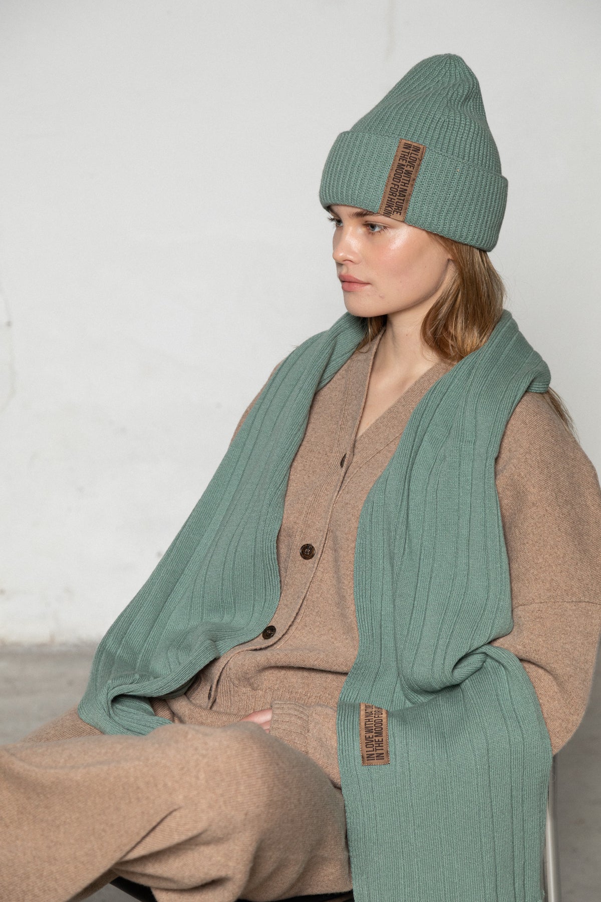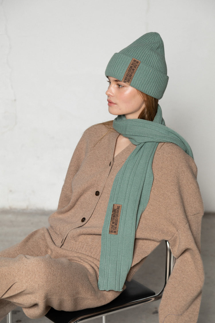 SEA GREEN LAMBSWOOL SCARF WITH CHOCOLATE LABEL