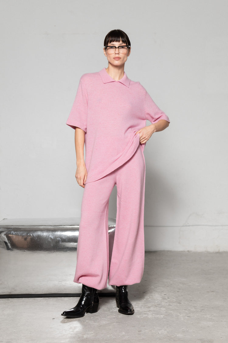 SOFT PINK CASHMERE-MERINO WOOL BALLOON TROUSERS