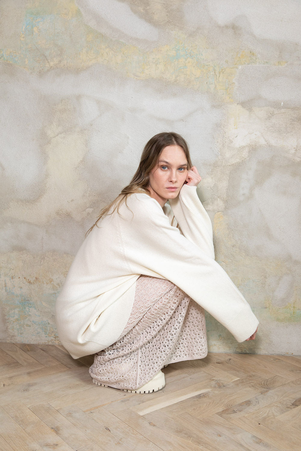 SOFT POWDER EXTRA FINE MERINO WOOL LACE SKIRT