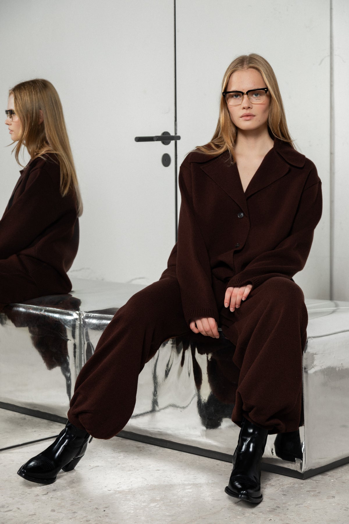 CHOCOLATE LAMBSWOOL JACKET CARDIGAN