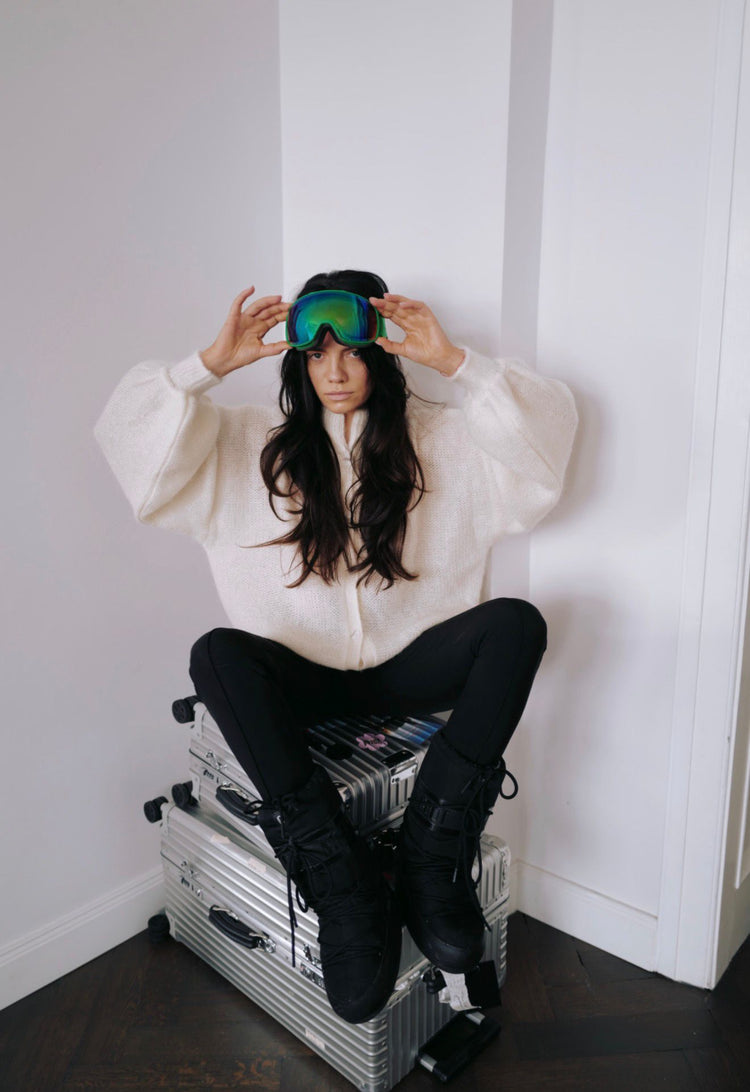 This cardigan belongs to the For Lovers & Trees x Isaya Elais The State of Being Lucky collection. Knitted from fine, fluffy kid mohair and silk, it feels exceptionally soft and is designed for an oversized fit, featuring striking balloon sleeves and sumptuous cable detailing. Soft as a cloud, this airy button-down cardigan embodies the collection’s philosophy of finding beauty in small, almost invisible details.
