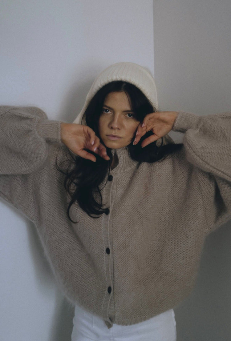 This hat belongs to the For Lovers & Trees x Isaya Elais The State of Being Lucky collection. Knitted from fine, fluffy kid mohair and silk, it is exceptionally soft and designed to elevate winter outfits with a playful twist. Pair it with the matching scarf for extra warmth.
