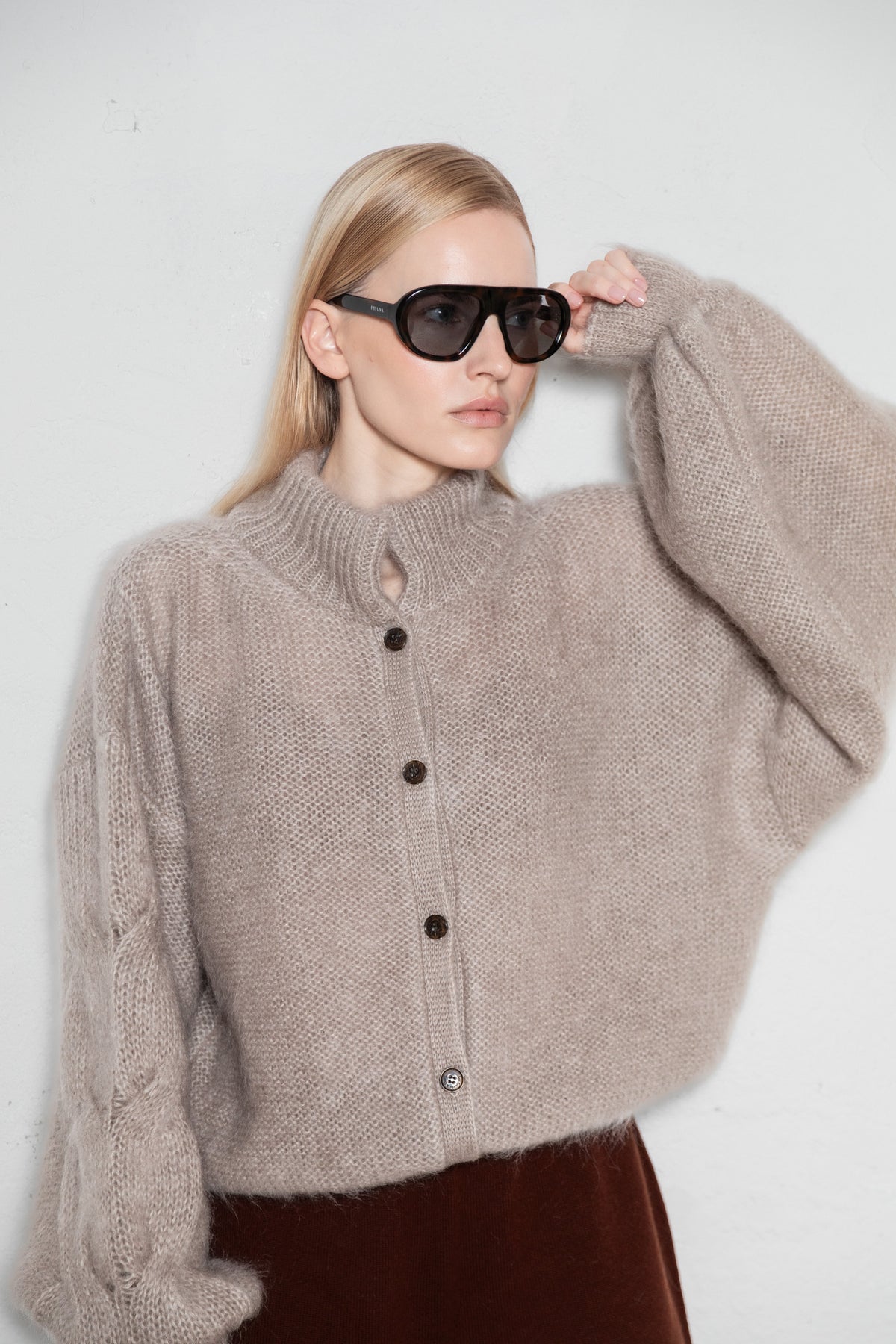 SAND MOHAIR AND SILK BUTTON DOWN CARDIGAN
