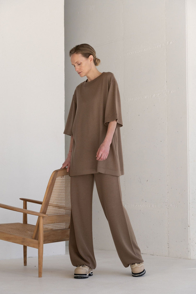 for lovers and trees extra fine merino wool t-shirt is designed for a relaxed and flattering oversized fit. Team it together with merino trousers to finish the look, and the oversized fit will become your top choice this summer.