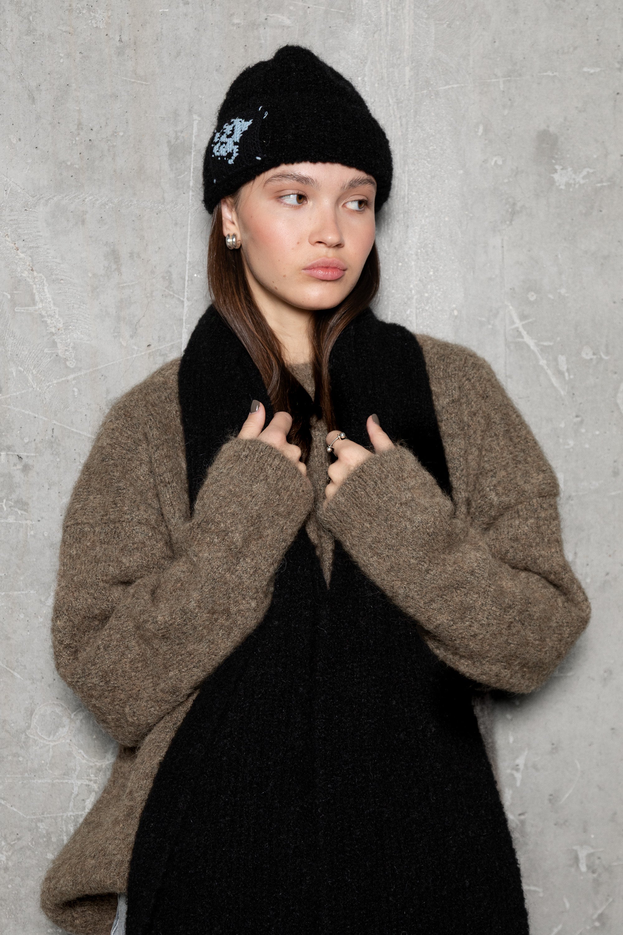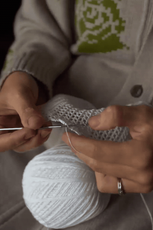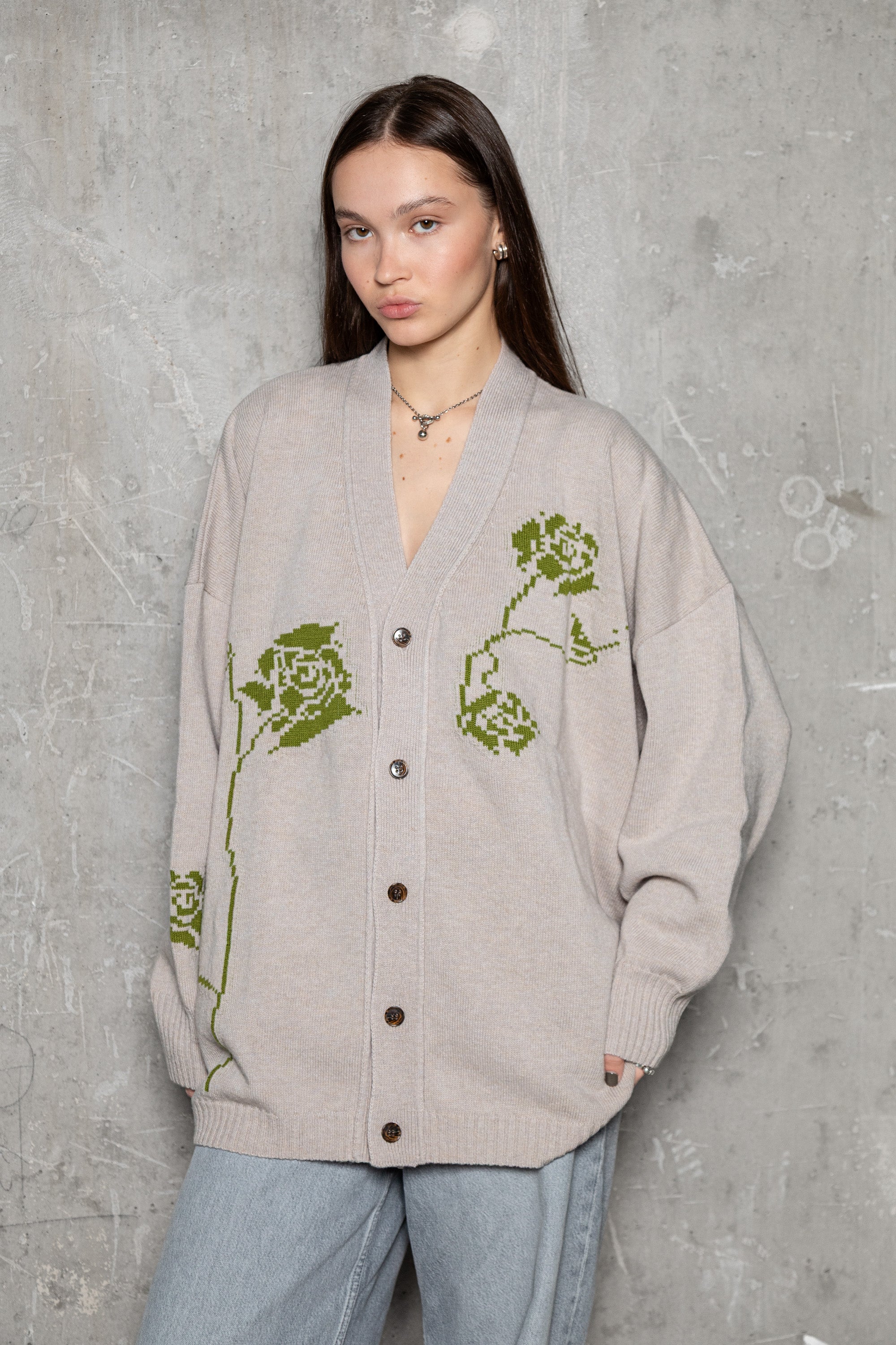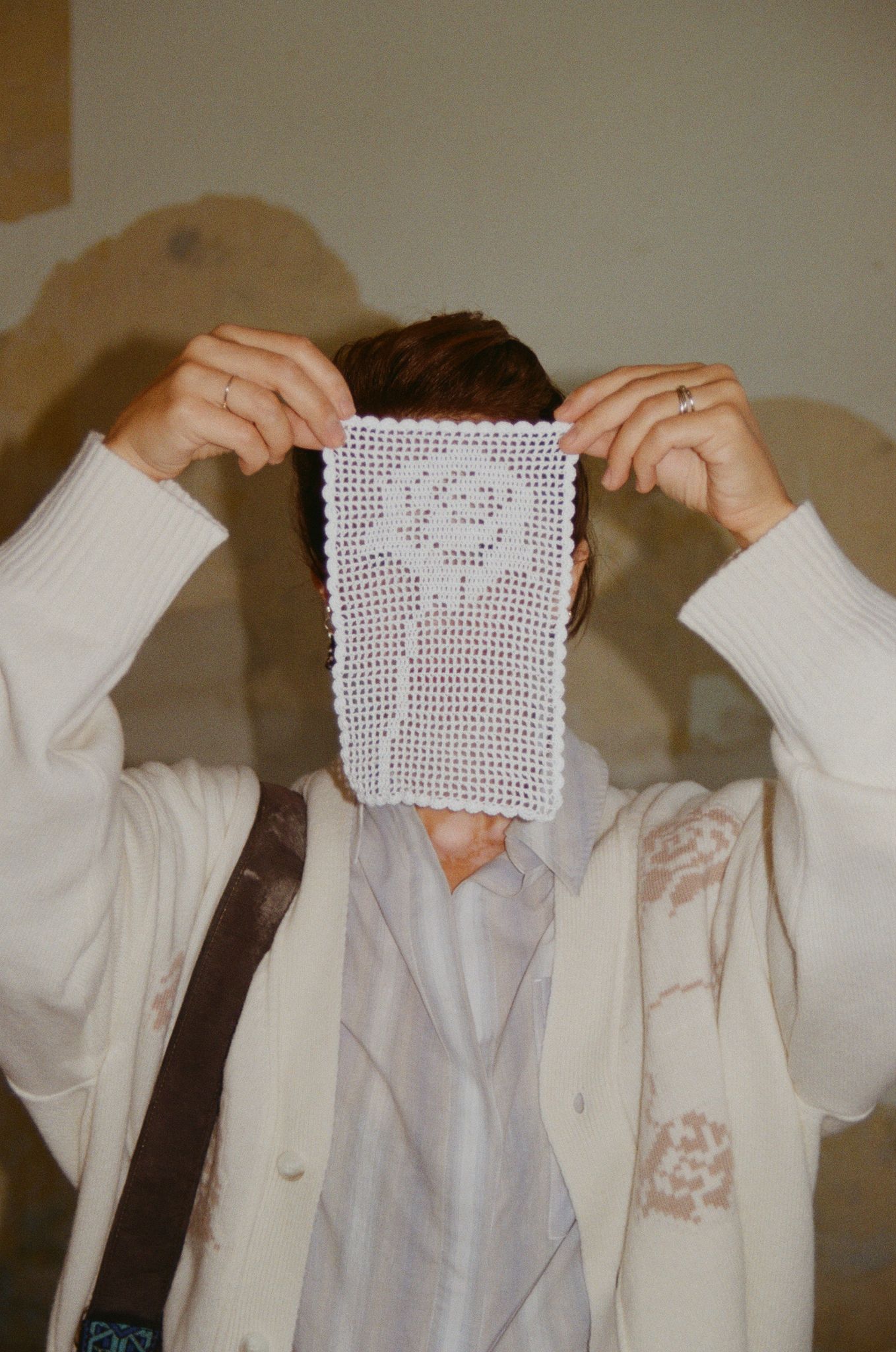 It began with inspiration from crocheting. From there, we created our rose pattern — and step by step, it grew into a cardigan.