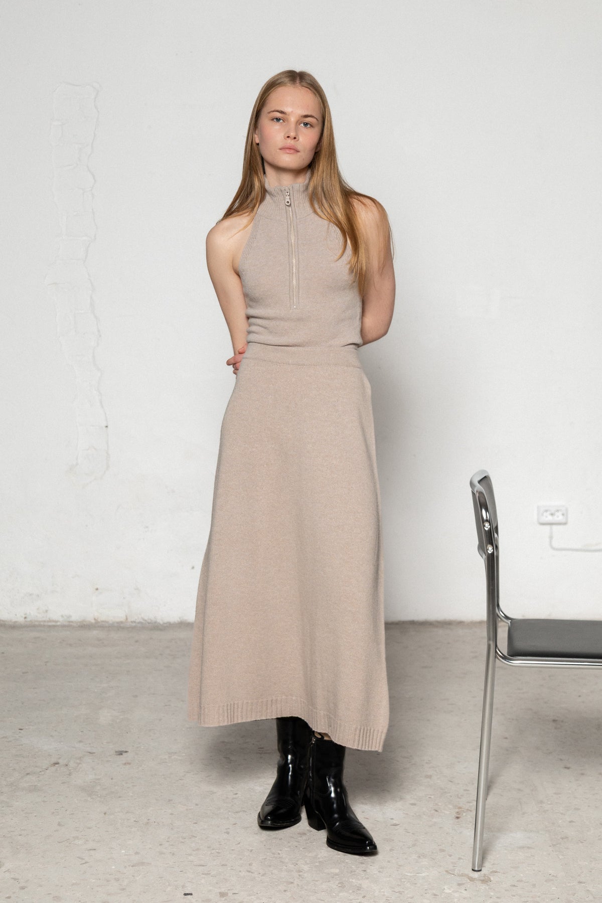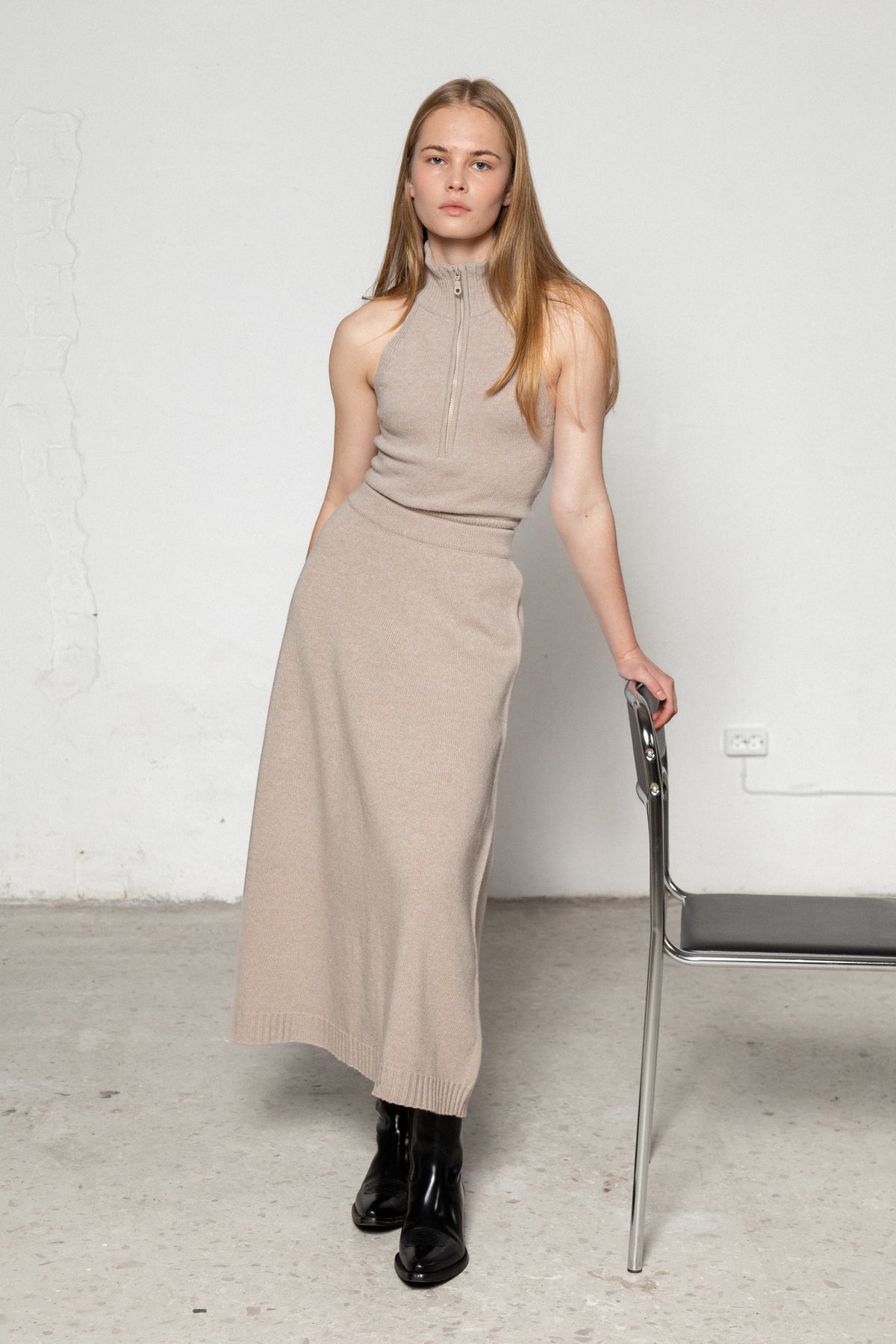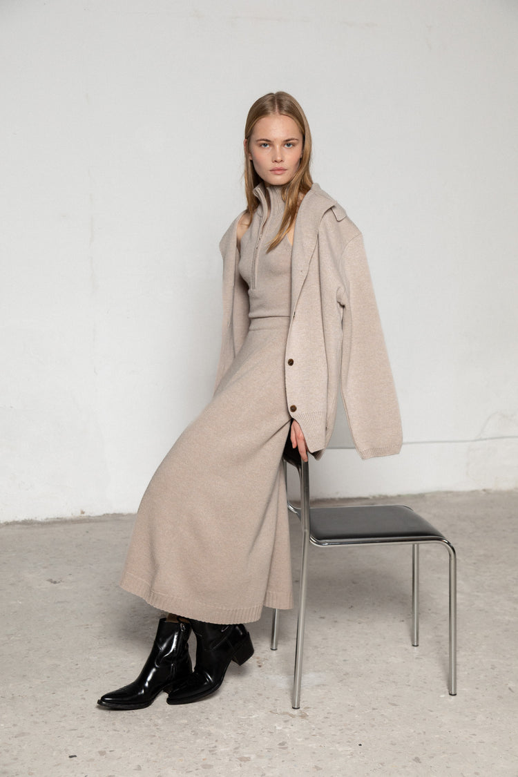 for lovers & trees seamless cashmere-merino wool crop top is the summer must-have to boost your confidence whenever, wherever. Wear it both ways, zipped and unzipped, to reach the desired reaction. The crop top is knitted from merino wool with a cashmere blend and has cropped length to achieve a bold, sexy look. Match it with the cashmere-merino wool cardigan for a perfect match.