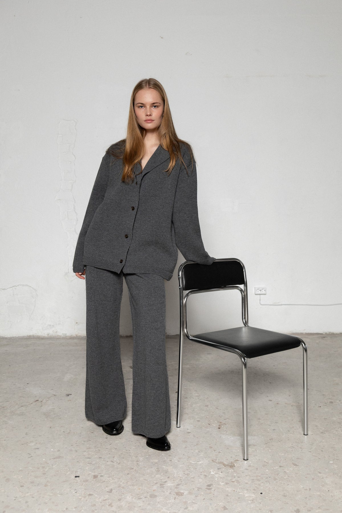 DARK GREY LAMBSWOOL JACKET CARDIGAN