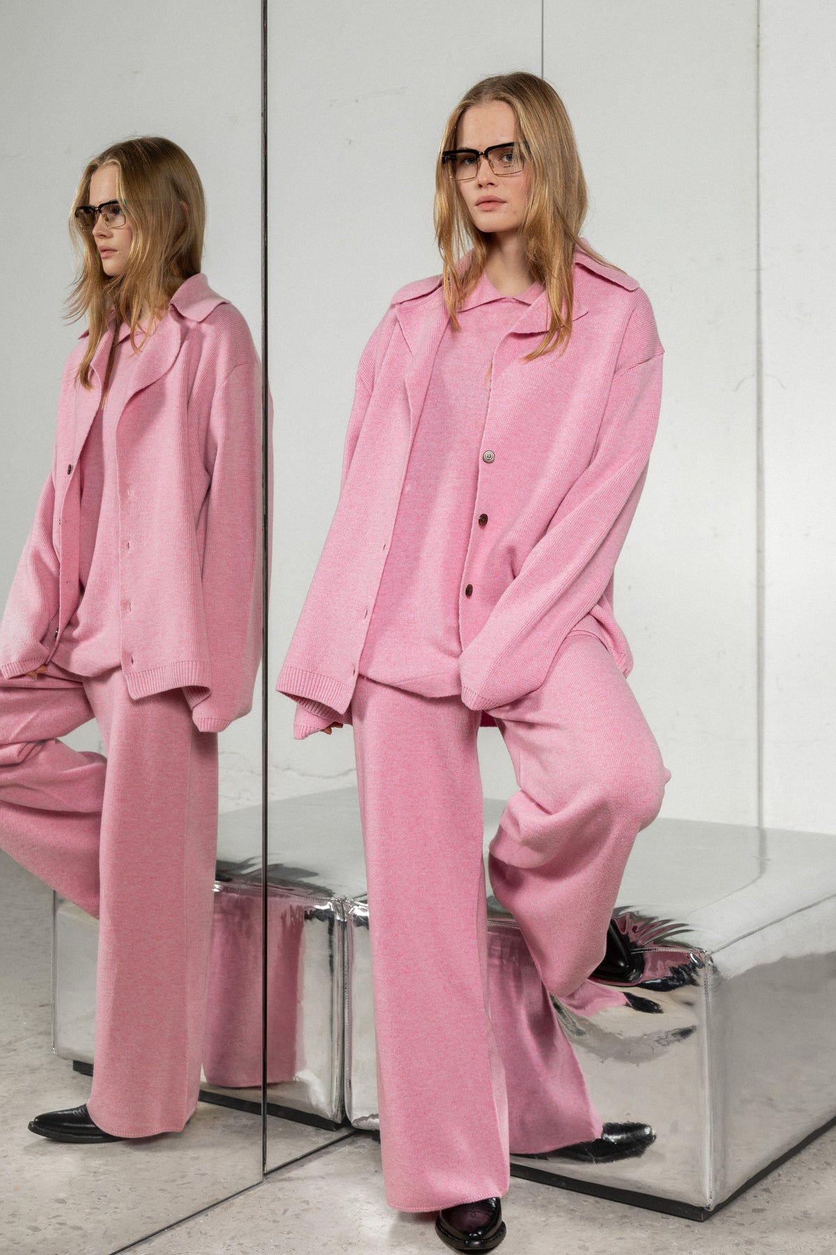 SOFT PINK CASHMERE-MERINO WOOL TROUSERS