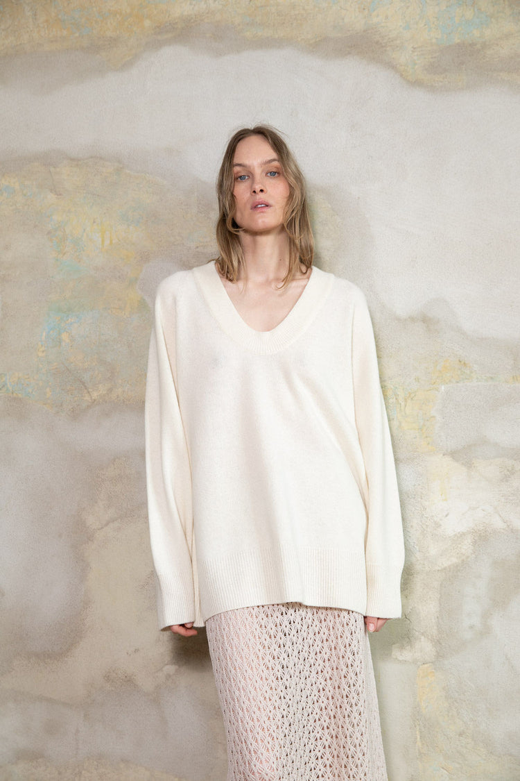 The perfect combination of effortless and cozy, you’ll find yourself reaching for this knit again and again. Locally knitted from cashmere and extra fine merino wool blend, it will keep you warm anytime.