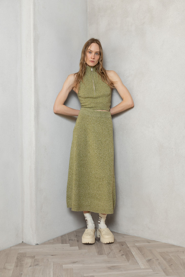 for lovers & trees seamless cashmere-merino wool crop top is the summer must-have to boost your confidence whenever, wherever. Wear it both ways, zipped and unzipped, to reach the desired reaction. The crop top is knitted from merino wool with a cashmere blend and has cropped length to achieve a bold, sexy look. Match it with the cashmere-merino wool cardigan for a perfect match.