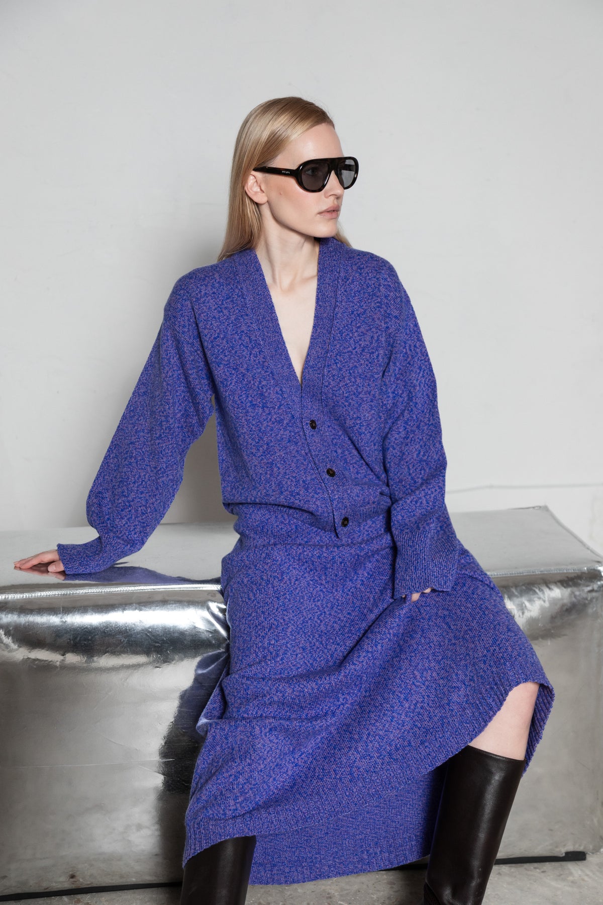 LILAC MELANGE CASHMERE-MERINO WOOL MAXI SKIRT