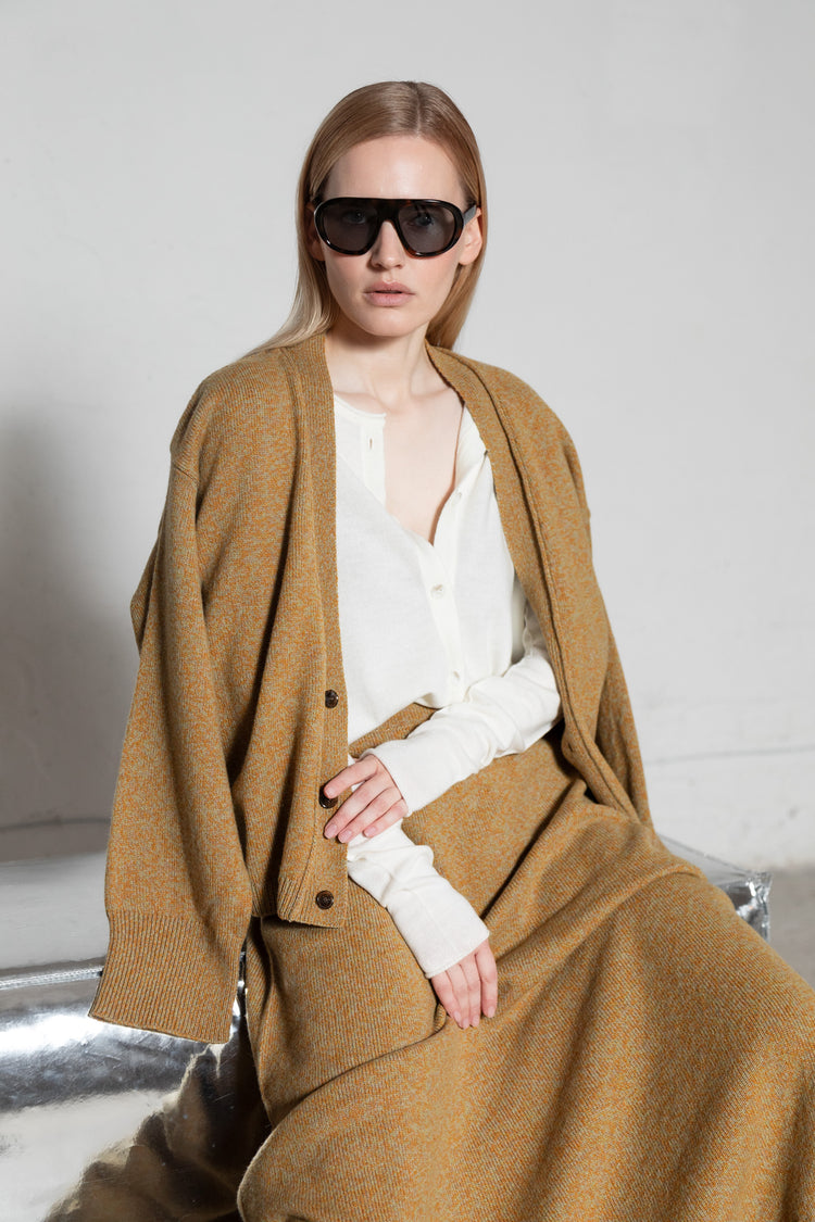 YELLOW MELANGE CASHMERE-MERINO WOOL MAXI SKIRT