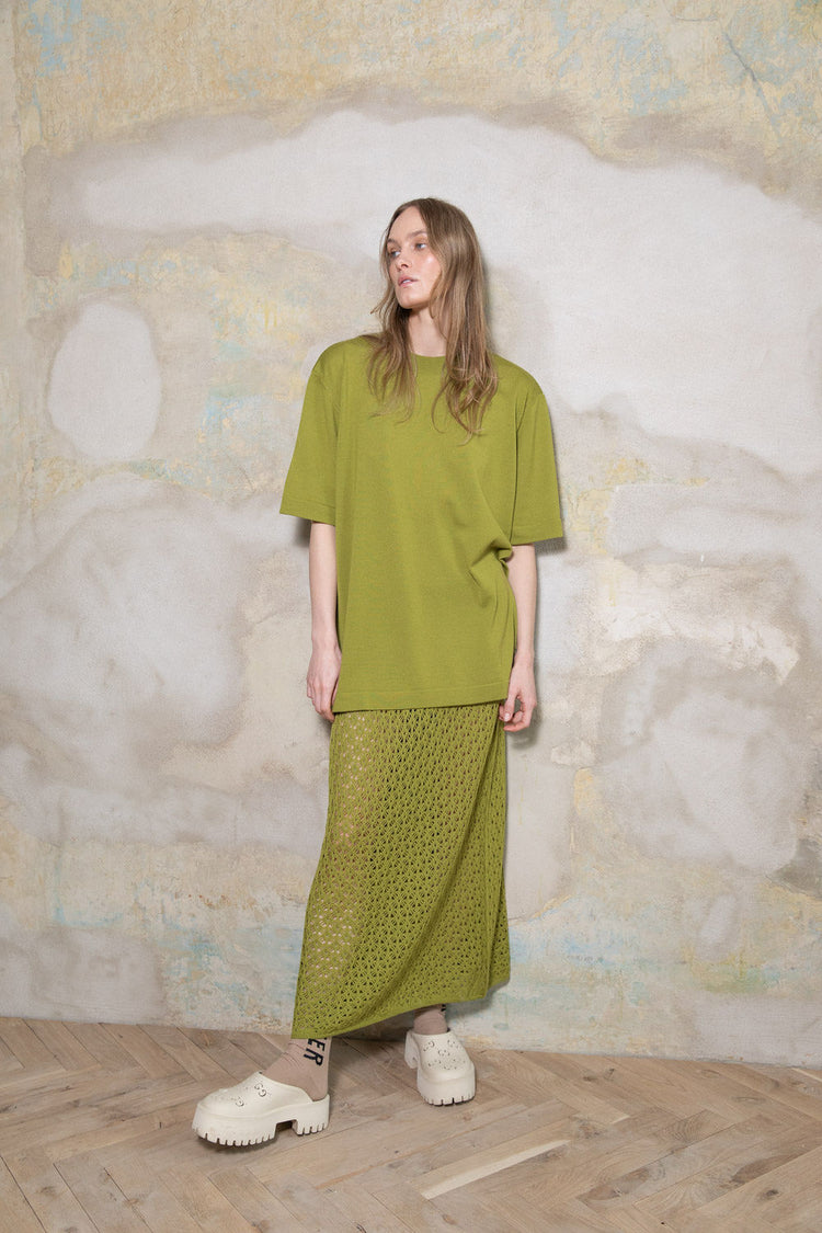 PEAR GREEN EXTRA FINE MERINO WOOL LACE SKIRT