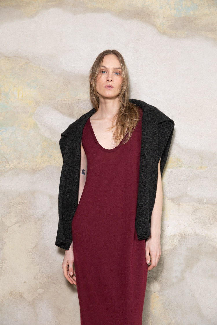 WINE RED SHEER-KNIT EXTRA FINE MERINO WOOL DRESS