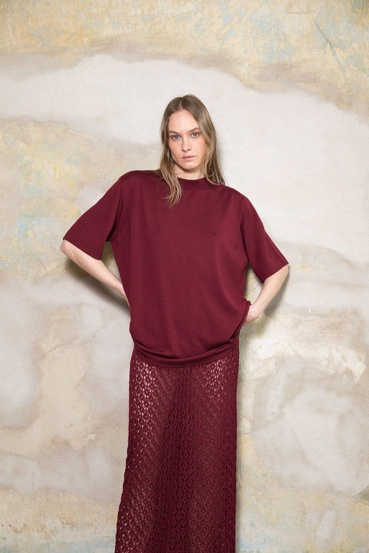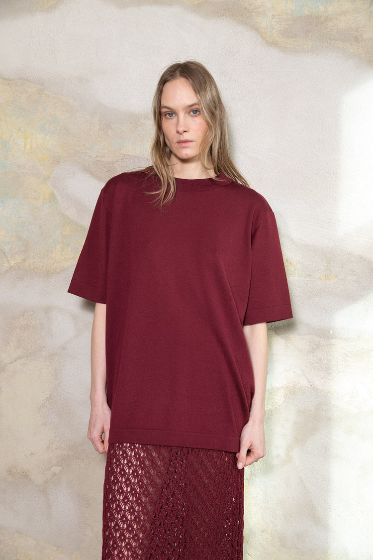 WINE RED EXTRA FINE MERINO WOOL T-SHIRT