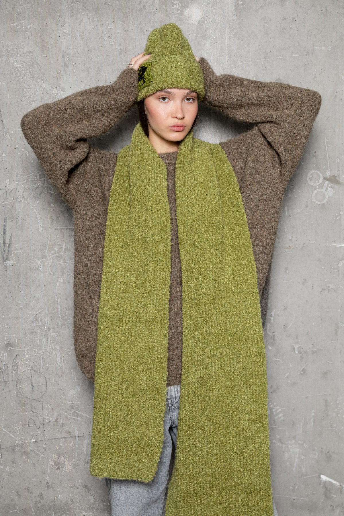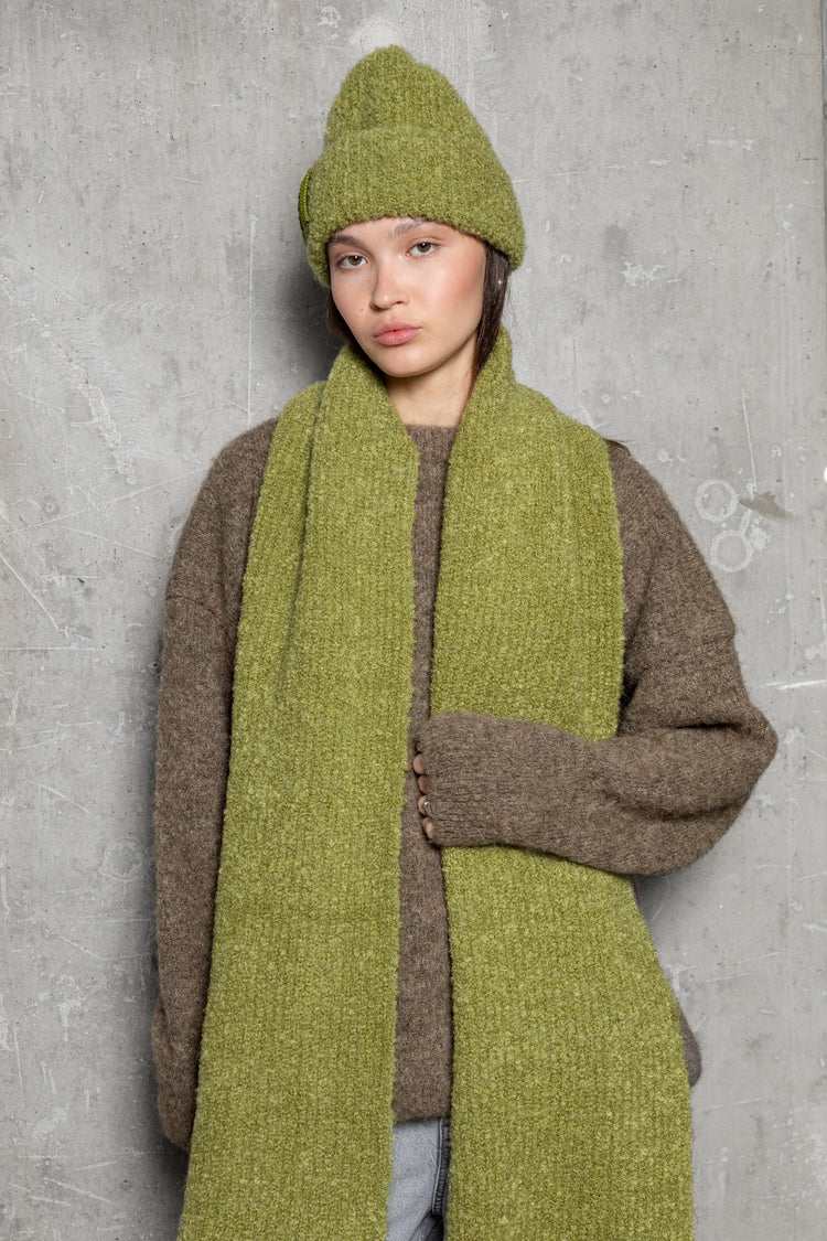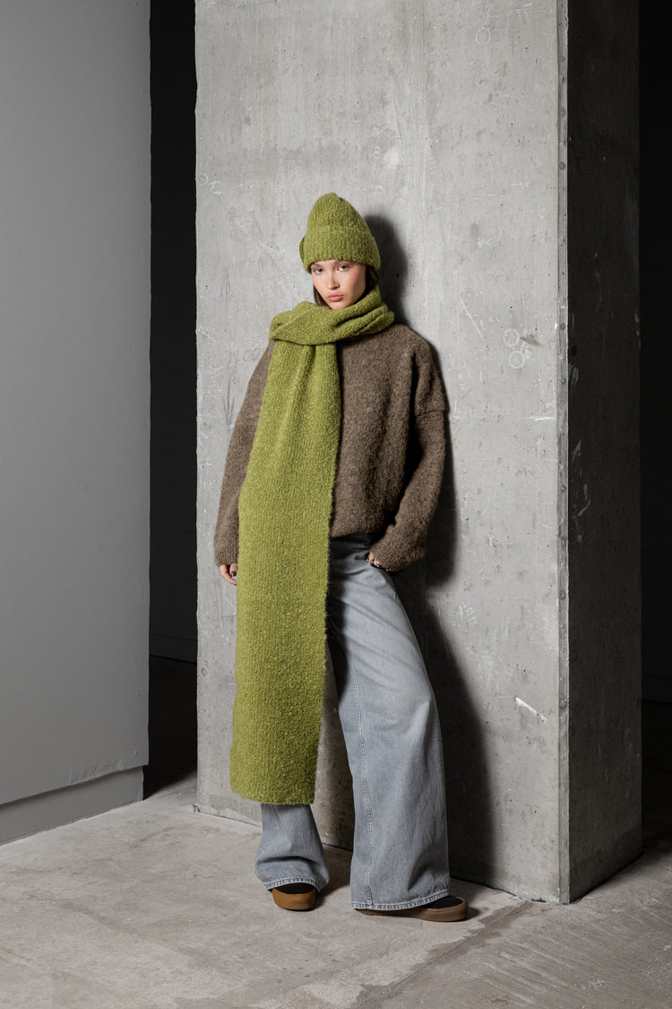 MOSS GREEN TEDDY ALPACA SCARF